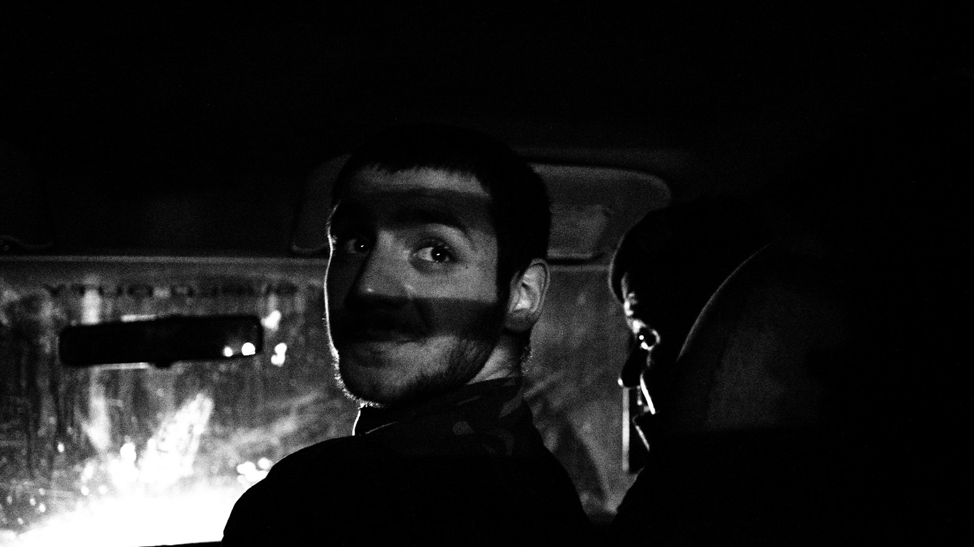 A young man wearing a black bandana gestures with his hand in the shape of a gun with his eyes looking directly into the camera